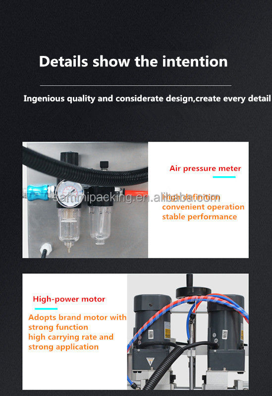 Geeignet für das Schrauben von Flaschen in verschiedenen Formen in der Lebensmittelindustrie, in der Pharmaindustrie, in der täglichen Chemieindustrie, in der Pestizide- und Kosmetikindustrie usw.Die vier einstellbaren Drehzahlmotoren werden jeweils für die Versorgung mit, Flaschenverschließung, Ablieferung und Verschraubung der Kappen. Sie zeichnet sich durch hohe Automatisierungsstufe, hervorragende Stabilität, einfache Anpassung, keine Ersatzteile für den Austausch von Flaschenarten oder Kappen aus,Das kann nur durch Anpassung der.